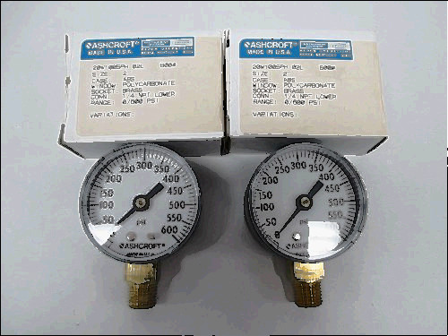 I have up for bidding a lot of 2 brand new Ashcroft pressure gauge Model # 5WH89 (25-1009-AWL-02L-160#) This item is brand new never used in original box ASHCROFT DURALIFE PRESSURE GAUGE NEW/UNUSED CONDITION IN BOX PART NUMBER: 2C576 0-200PSI 1/4"NPT