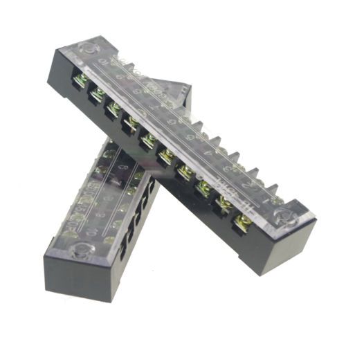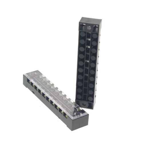 (2)5 Position/Poles 10 Hole Screw Terminal Blocks Covered Barrier Strip 600V 25A