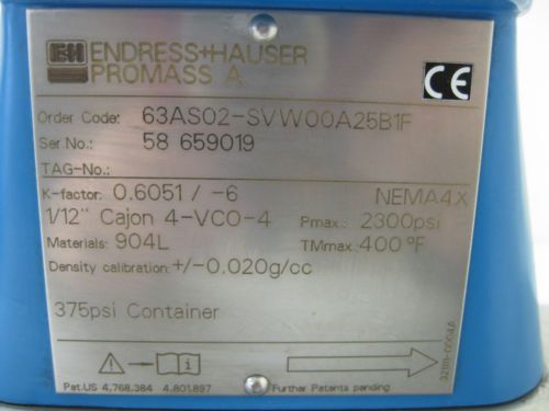 1/12" Cajon Endress+Hauser 63AS02-SVW00A25B1A Promass 63 A Flowmeter D5 (1013)