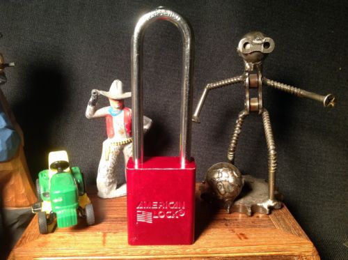 4 American Series1100 RED padlocks 3" serviced re-keyable A1 Condition Great buy