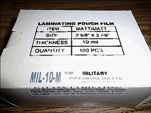 100 military id card 10 mil  2-5/8"x3-7/8"  laminating/laminator pouches sleeves for sale