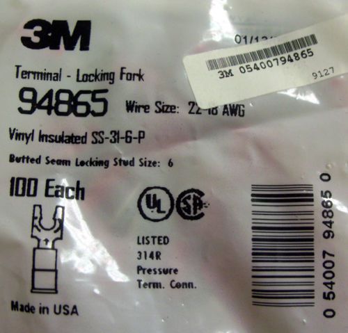100 x 3M 94777 Fork Terminal Blue 16-14 AWG