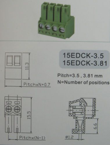 100 pcs 5pin Pitch 3.81mm Screw Terminal Block Connector Green Pluggable Type