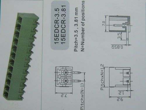 100 x Angle 90° 10 pin 3.5mm Screw Terminal Block Connector Pluggable Type Green