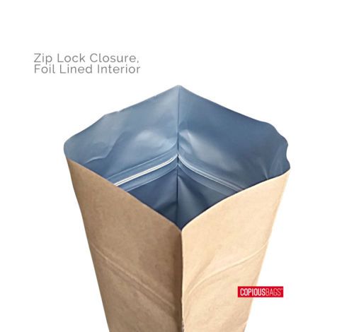 40ct. Kraft 2lb Lined TIN TIE BAGS with Window 6"x2-3/4"x9-1/2" FDA Food Grade