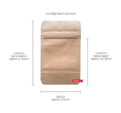 1000 - 4oz. Kraft Window Stand Up Pouches 5" x 8" FULL CASE