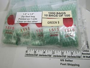 1000 GREEN CLEAR 1 1/2" X 1 1/2" 2 MILL PLASTIC ZIP SEAL BAGS NEW