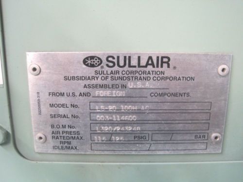 Air Compressor Sullair 25S-300 300 HP 100 PSIG $ 9500.00