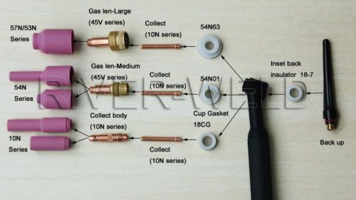 TIG KIT Collet Bodies 10N30 10N31 10N32 10N28 406488 &TIG Torch WP 17 18 26 5PK