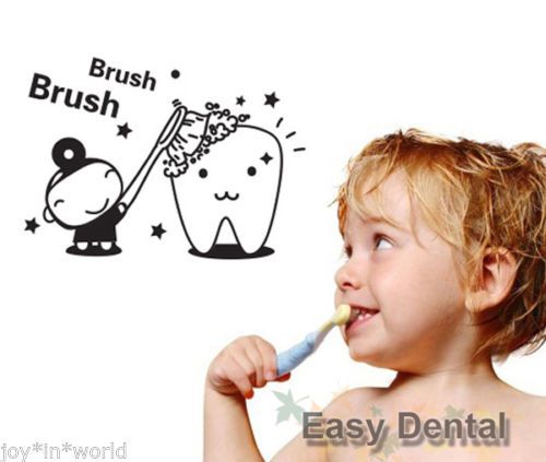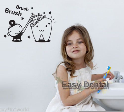 1 Wall Decal Vinyl Sticker Decor Kids Baby Tooth Brush Wash Bathroom Art Dental