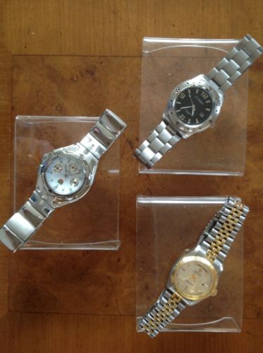 5 Used Jewelry Showcase Display Trays Pads Wood Base