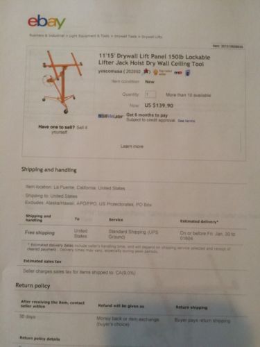 Model | 11'15' Drywall Lift Panel 150lb |