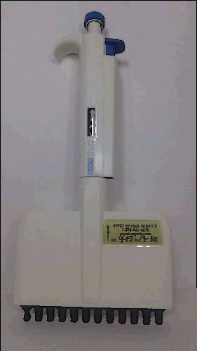 This is for a used variable Titertek 12-channel pipette (50-300uL). It is in good condition and clean. Calibration may be needed to maintain accuracy.