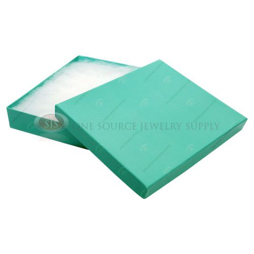 100 Teal Blue Gift Jewelry Cotton Filled Boxes 6 1/8" x 5 1/8" x 1 1/8" Pendant