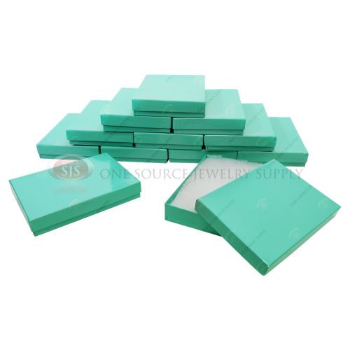 100 Teal Blue Gift Jewelry Cotton Filled Boxes 6 1/8" x 5 1/8" x 1 1/8" Pendant