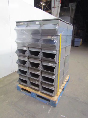 12"W 20"D 10"H Gray Industrial Steel Open Front Stackable Storage Bins Lot of 33