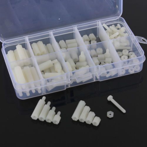 88pcs a box White M3 Nylon Tool M-F Hex Spacers Screw Nut Assortment Kit Set