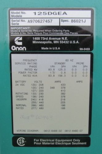 onan cummins 35 kw gen set 1 ph and 3 ph propane 386hours