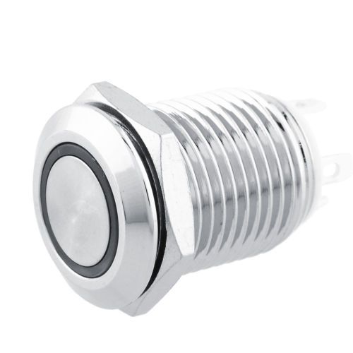 1PC 12mm 2A/36V Blue LED Momentary Push Button Flat WaterProof Car Boat DIY