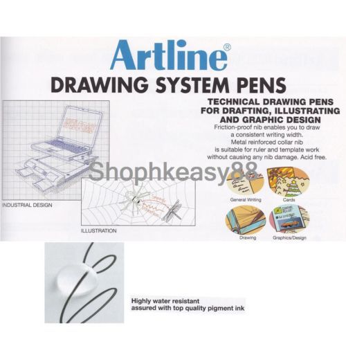 12x Artline EK-233 Technical Drawing System Pens 0.3mm Choose Color Free Ship