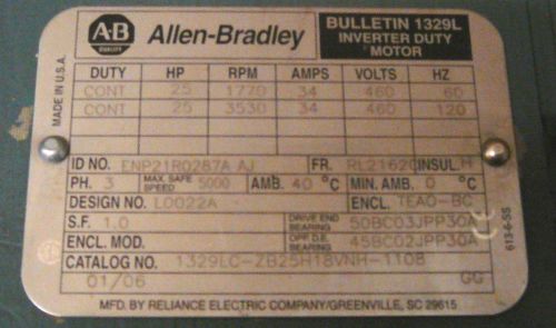 Emerson US Electric Motor 30 HP 1760 RPM 3 Phase A30S2C Model R101A