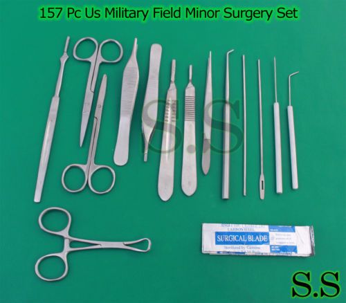 157 PC US MILITARY FIELD MINOR SURGERY SURGICAL VETERINARY INSTRUMENTS KIT
