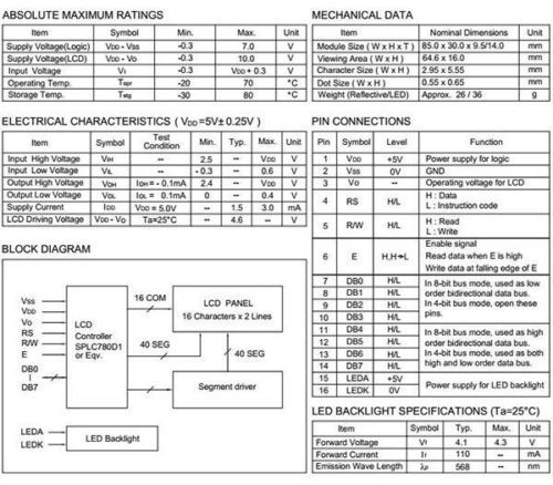 | Character Type | 16 characters x 2 lines | ||