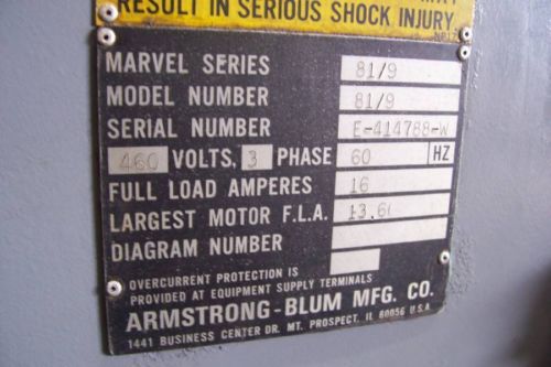 MARVEL HACKSAW MODEL 9A WITH FEED TABLE