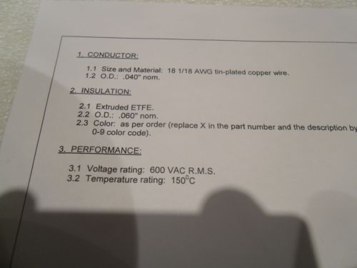 250' 16 AWG TGGT WIRE, HIGH TEMPERATURE WIRE, 250°C, UL 5256/5196