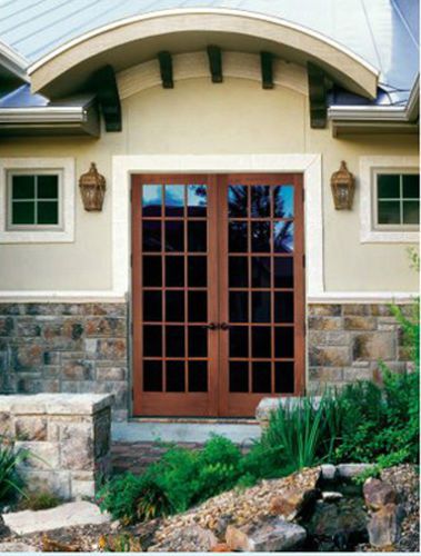 Exterior Hemlock Solid Wood Stain Grade French Doors 12 Lite Raised Bottom Panel
