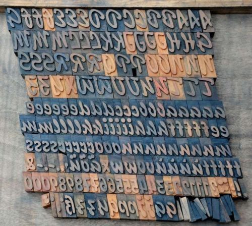 130 LETTERPRESS WOOD TYPE,Alphabets-A to Z, Punctuations,Complete Set-Unused- NR