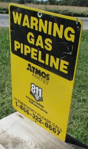 14x10 Warning Gas Pipeline Vintage Atmos Energy Road Sign Mancave Garage Art