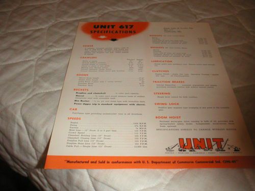 1959 UNIT MODEL 617 SERIES B CRAWLER CRANE SALES BROCHURE