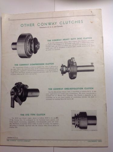 1950'S Conway FRACTIONAL HORSEPOWER DISC CLUTCH Catalog (cars, industrial)