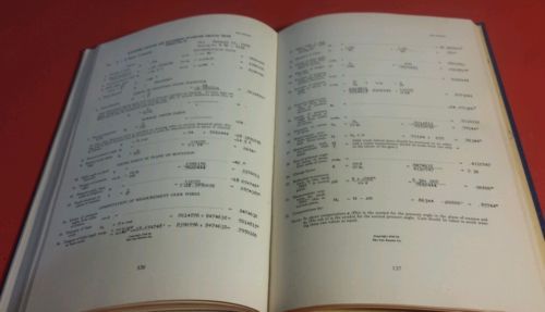 | “GOOD with light to moderate wear at covers/corners/edges. Tight binding. No stains or odors noted. Name annotations and print marking at front inside endpapers. Back endpapers have numerous annotations/mathematical calculations. Pages appear to be clean and unmarked. I notice at least one page with a corner tear. Overall a very nice vintage copy in my opinion. Please review photos to further evaluate condition.” |