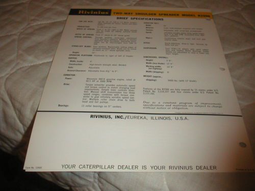 1960's RIVINIUS R500 SHOULDER SPREADER FOR CATERPILLAR GRADERS SALES BROCHURE