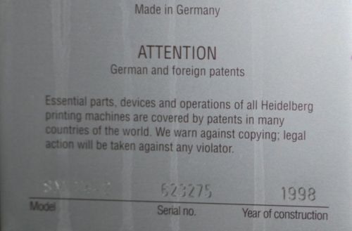 Heidelberg 5 Color MOFPH 1986 Offset 19"x25" Press