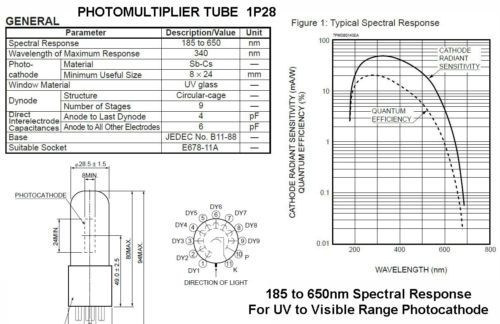 1P28 PHOTOMULTIPLYER TUBE WITH HIGH GAIN DYNODE CHAIN CIRCUIT IN BRASS HOUSING