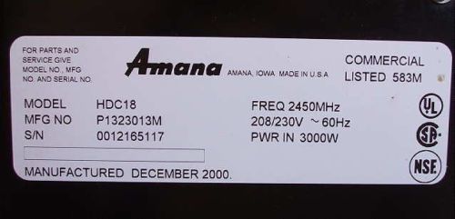 Amana Commercial Restaurant Microwave Oven Heavy Volume 3000 Watt RC30S2