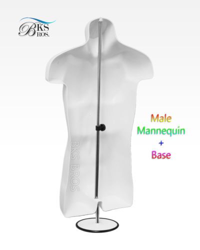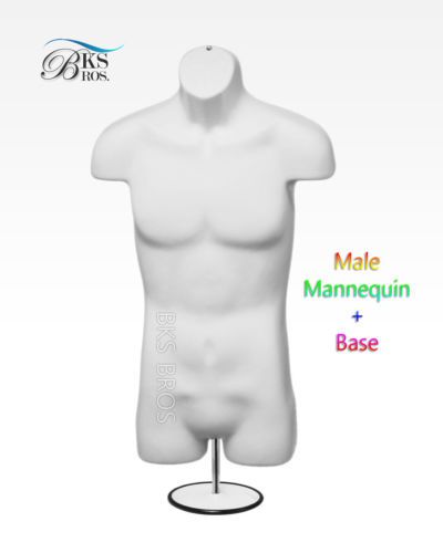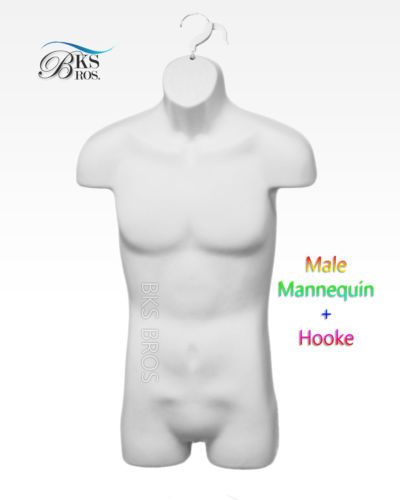 WHITE MALE TORSO MANNEQUIN FORM w/Stand +Hanging Hook, Man's Clothing Display