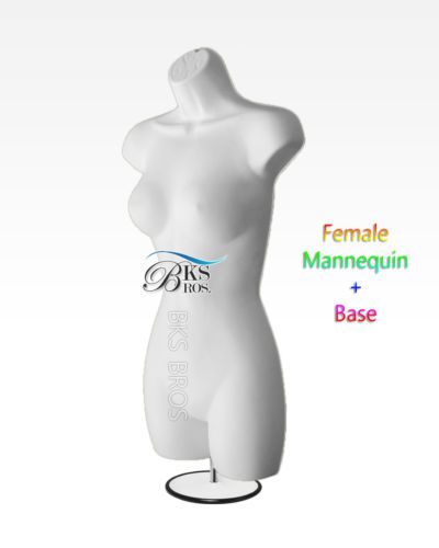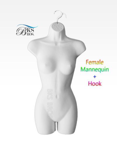 White FEMALE TORSO MANNEQUIN w/Stand +Hook for Hanging, Woman's Clothing Display