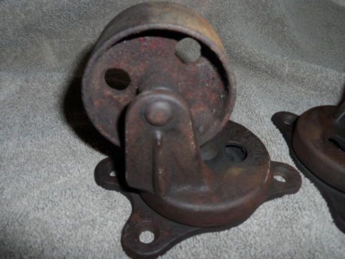Four (4) Antique Working Metal 3" Industrial Swivel Casters, Cart Wheel