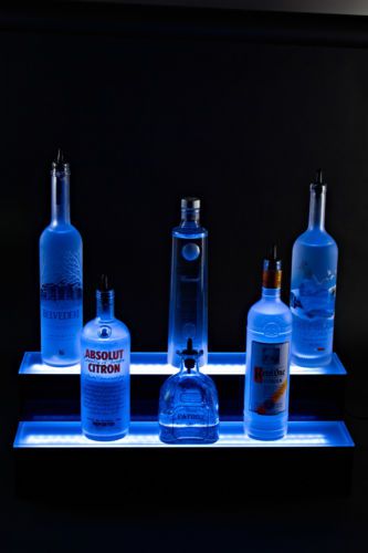 2 step bottle shelf display, 2 Tier 72" led lighted liquor shelve bottle display
