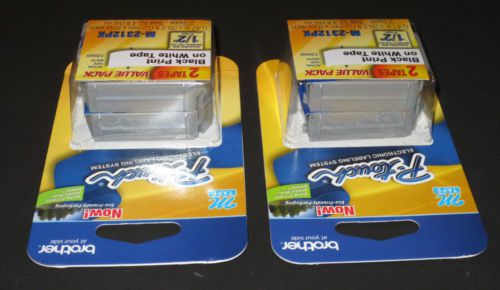2 twin Packs Brother TZe-2312PK P-Touch black print on white tape-sealed