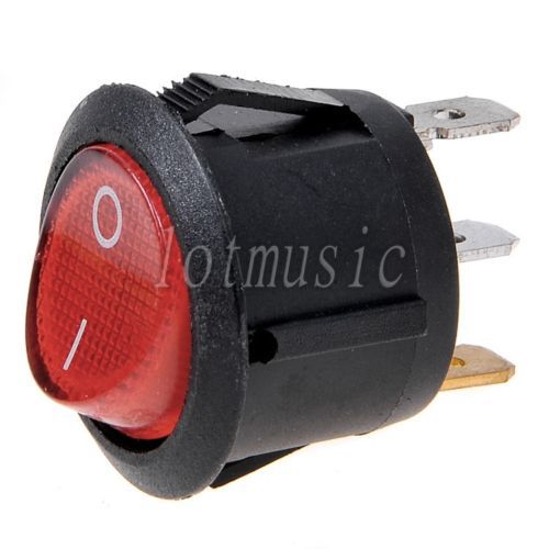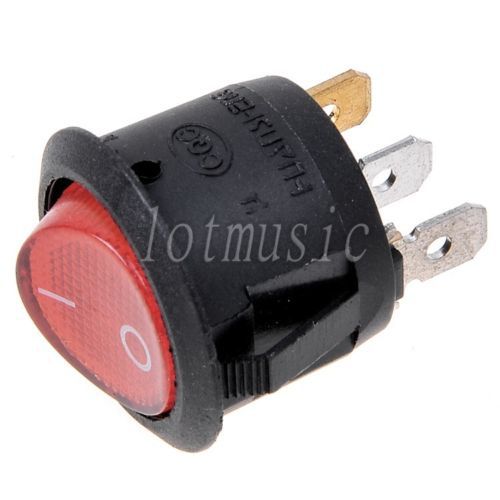 30* NEW Round Red 3 Pin SPST ON-OFF Rocker Switch With Neon Lamp