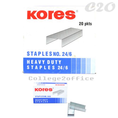 1 BOX Of KORES STAPLES 24/6 Pins Good Quality Metal 1000 Pins