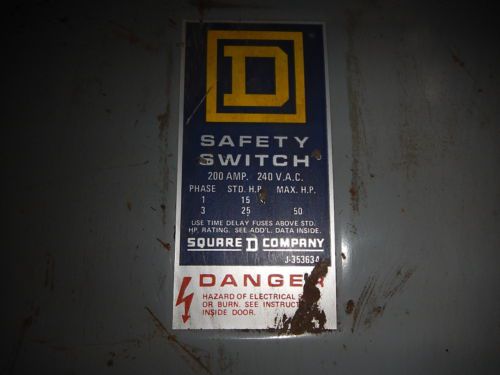 SQUARE D 97314 ENCLOSED SWITCH 200A 240V 2P