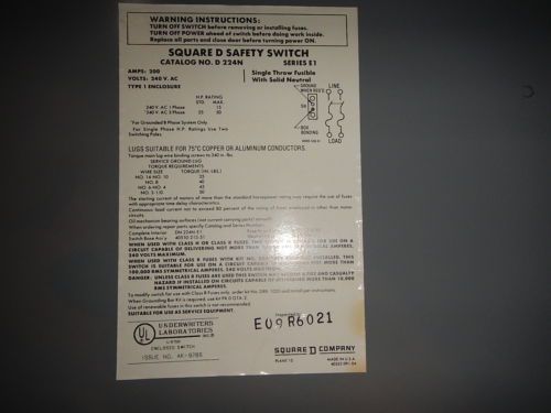 Square D D324N Series E2 Fusible Safety Switch 200A 240VAC 3PH 3Pole