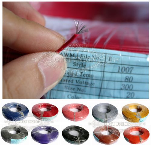 50M/164ft UL-1007 Hookup 330V FT1 LF 1-pin Black 20AWG Cable Cord Wire Strip