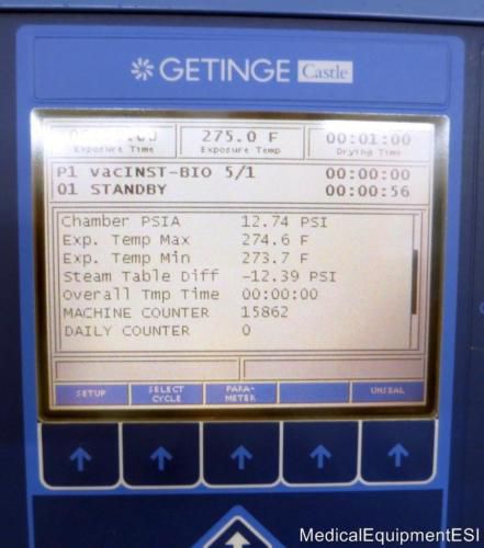 2002 Getinge 433HC Gravity and Vacuum Steam Sterilizer Autoclave 15862 Cycles 2002 GETINGE 433HC Vacuum Steam Sterilizer 15862 Cycle Count DOES NOT INCLUDE STEAM GENERATOR Getinge 400/500HC Series Steam Sterilizers deliver an unmatched combination of sterility assurance, cycle flexibility, real-time information access and advanced operator control. The units feature a 5.7" VGA color display with intuitive, flexible, soft-key controls to facilitate fast on-screen modifications of cycle parameters and quick reference of cycle values. These sterilizers offer 14 (422/522HC) to 22 (433/533HC) cycles for processing surgical instruments, utensils, porous goods, glassware and liquids. Getinge 400/500HC Series Steam Sterilizers are for general-purpose gravity or vacuum steam sterilization of hospital instruments and supplies. 400/500HC Steam Sterilizers are ideal for new construction or replacing older models, offering increased chamber loading capacities within the same wall openings and footprints of your current units. Optimized for OR/Point-of-use Sterile Processing, Central Sterile Processing (CSSD) and surgery centers Intuitive controls with visible time remaining in cycle are displayed Four models to choose from Greater chamber capacities Multiple shelf adjustments with equal-size adjustable shelves for larger loads Hinged front panel facilitates servicing Model 433HC Type Gravity and vacuum steam Chamber height 17.5" (445mm) Chamber width 17.5" (445mm) Chamber depth 26" (660mm) Chamber footprint 4.6 Cu Ft (130L) Overall Dimensions: 26" W x 36" D x 74" H For more detailed specifications, see this document at Getinge: http://www.getinge.com/files/us-hc/product-documents/sterilization/400-500hc-sterilizer/productspecifications/hc-400500series-1111-en-us-productspecs.pdf Sterilizer is Meant To Be Installed Into The Wall DOES NOT INCLUDE SIDE PANELS Fully Tested- In Excellent Working Condition Normal Wear and Tear SEE PHOTOS 30 DAY WARRANTY Shipping is $450 to a Business in the 48 States Add $75 for a Lift Gate Add $75 to a Residence Visit My eBay Store Please Contact Us With Any Questions 720-330-9307 We Can Ship Worldwide Payment Options: We accept the below payment options. Please feel free to contact us with any questions regarding payments. You can reach us via email using "ask a question" in the eBay listing or by phone at 720-330-9307. Thank You! 1. Paypal: We accept Paypal payment for items up to and including $2000. Any items selling for greater than $2000 will require an alternative payment method. 2. Direct Credit Card payment to us over the phone. We accept Visa, Master Card, Discover, and American Express. Please call us at 720-330-9307 if you would like to pay for an item with a credit card. Credit cards are excepted for items in the amount of $2,000 or less. 3. Business check or direct wire. We are happy to accept checks and wires, if you would like to pay with check or wire please email or call us and we will provide mailing address or wire information. Office: 720-330-9307 Ebay Seller ID: medicalequipmentesi Company Name: Equipment Sales International LLC Location: Denver, Colorado Phone: 720-330-9307 Shipping Information: We pride ourselves in quality packaging to protect your item and fast shipping. In most cases your item will ship within 1 business day of payment receipt. We will send shipping notifications and tracking numbers as soon as item ships. Please see top of listing to determine what shipping method we will use for a particular item. We ship with USPS, UPS, and freight for larger items. Please feel free to contact us with any questions regarding shipping using "ask a question" in the eBay listing or by phone: 720-330-9307. International Shipping: We have lots of experience with international shipping and can ship most items worldwide. If the international shipping price is not listed in the eBay listing, please contact us for a quote or with any questions. Return Policy: Most items we sell come with a 30 day money back guarantee. Please review the eBay listing to determine the guarantee that we are providing for the item. Some items have a longer guarantee, some have a shorter guarantee, and some items are sold as is. Please review the eBay listing of the item you are interested in to determine guarantee. Contact us with any questions. Thank You! Ebay required FDA Statement: The below statement is required by eBay when listing in medical categories. For most items we sell there are no restrictions to purchase but please contact us if you are unsure. "The sale of this item may be subject to regulation by the U.S. Food and Drug Administration and state and local regulatory agencies. If so, do not bid on this item unless you are an authorized purchaser. If the item is subject to FDA regulation, I will verify your status as an authorized purchaser of this item before shipping of the item." Company and Contact Information: We are Equipment Sales International located in Denver, Colorado USA. We specialize in the sale of a large variety of quality pre-owned equipment. We sell to the USA and Worldwide. Thank You for viewing our items and please contact us if you have questions or need more information. We are here to serve you! Customer satisfaction is our #1 priority!! Equipment Sales International LLC 4877 National Western Dr. Unit 109 Denver, CO 80216 Office: 720-330-9307 Pictures sell! Auctiva Free Image Hosting. Show off your items with Auctiva's Listing Templates Auctiva, THE simple solution for eBay sellers.